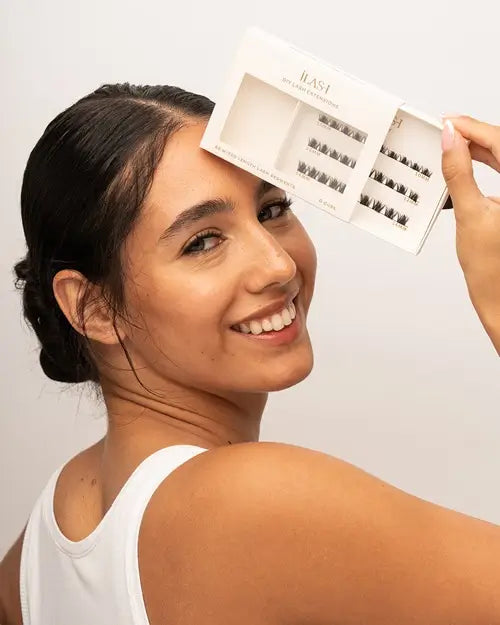 Use the bond sparingly and place each lash segment along your lash line for a natural, lifted look.