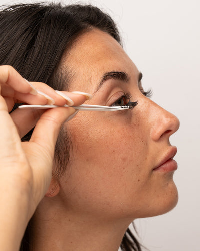 Gently press your natural and false lashes together with your fingers or non-stick tweezers for a seamless bond.